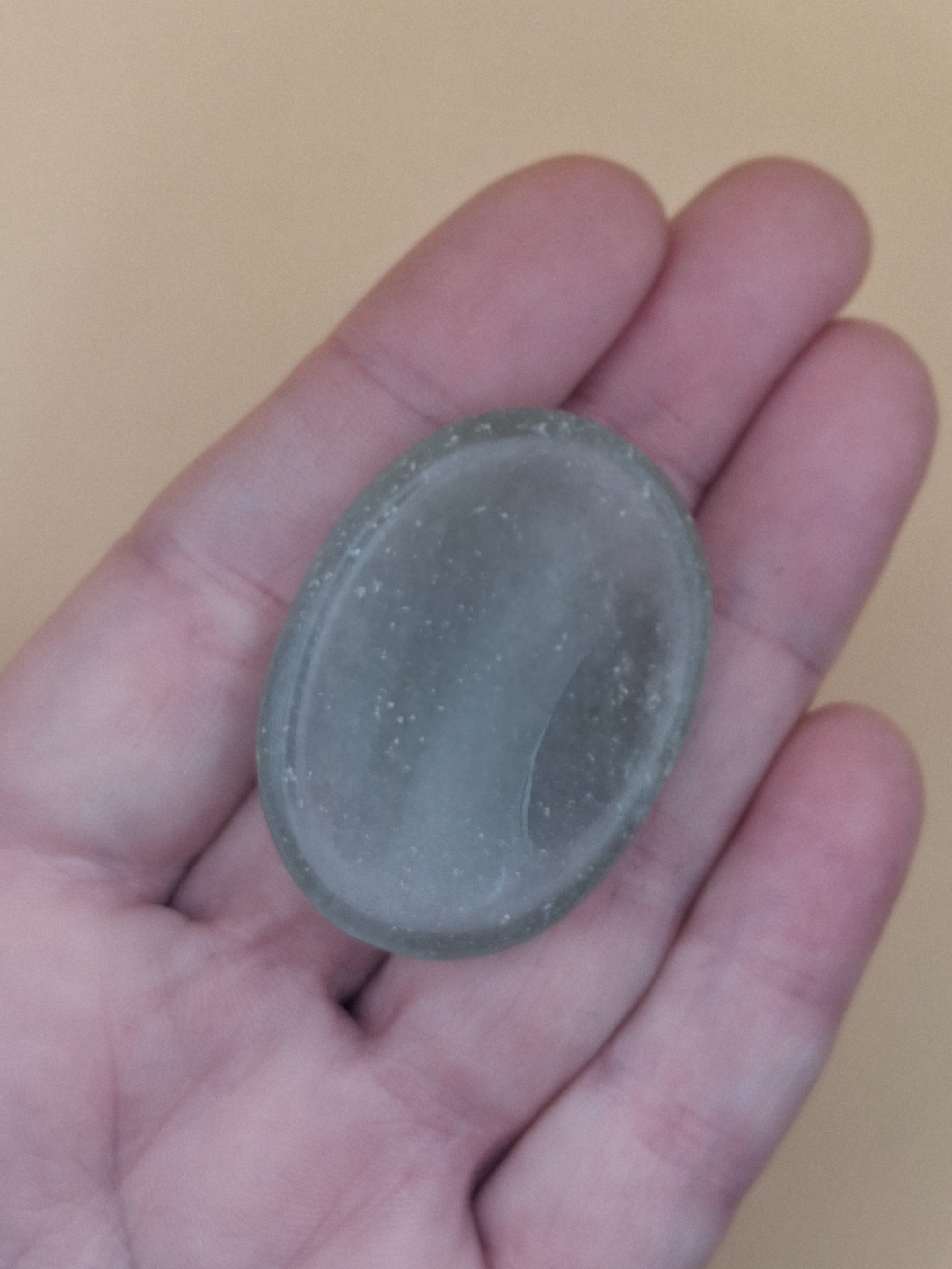 Oberfläche: glatt & poliert mit Daumenmulde auf einer Seite