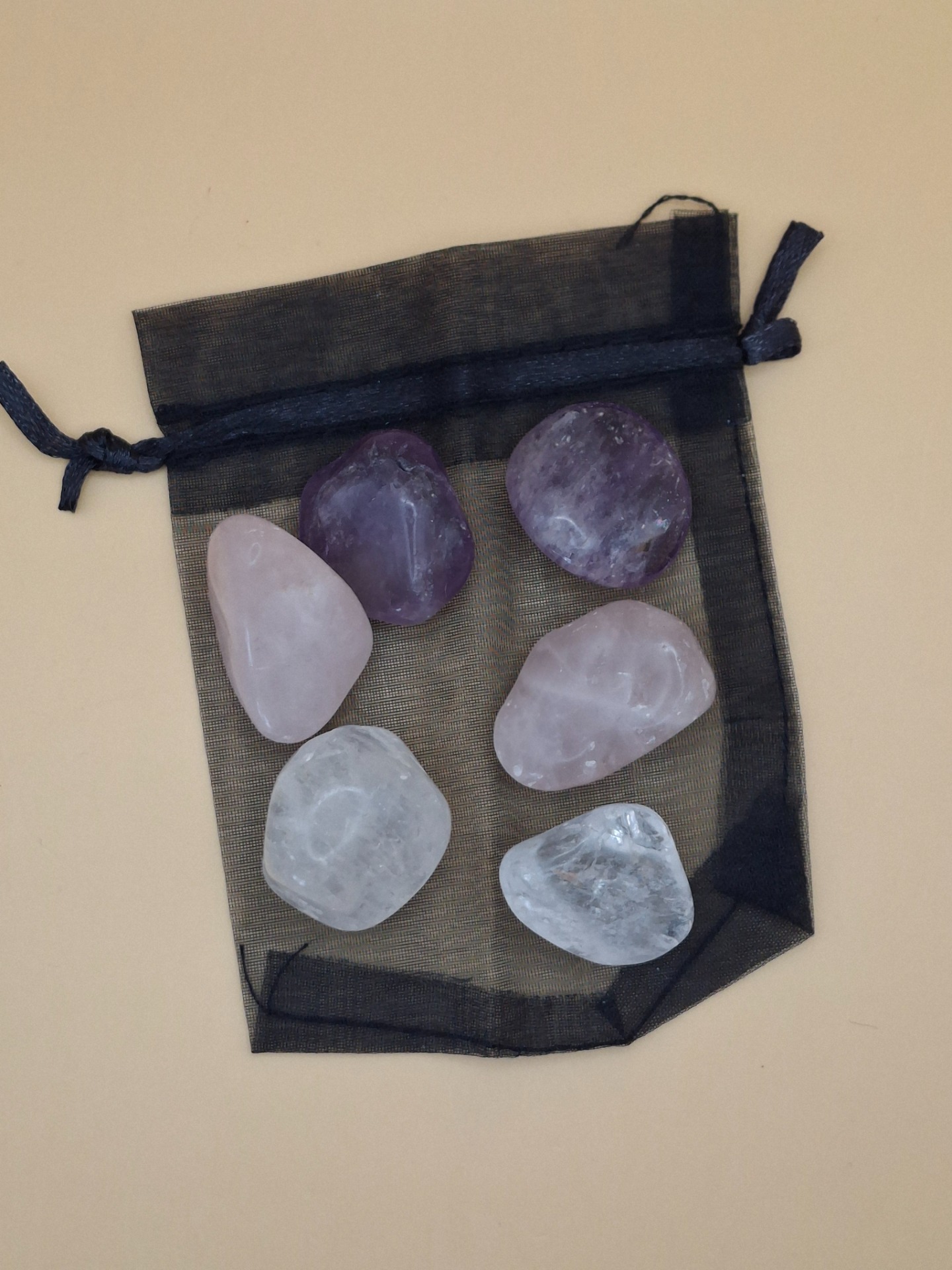 Diese ausgewogene Mischung besteht aus je zwei Trommelsteinen Amethyst, Bergkristall und Rosenquarz – eine Kombination, die für allumfassende Harmonie steht. Besonders empfohlen im Set mit dem Taschenbuch „Wassersteine“ von Michael Gienger (https://www.heilsteinharmonie.de/p/taschenbuch-wassersteine1/).
