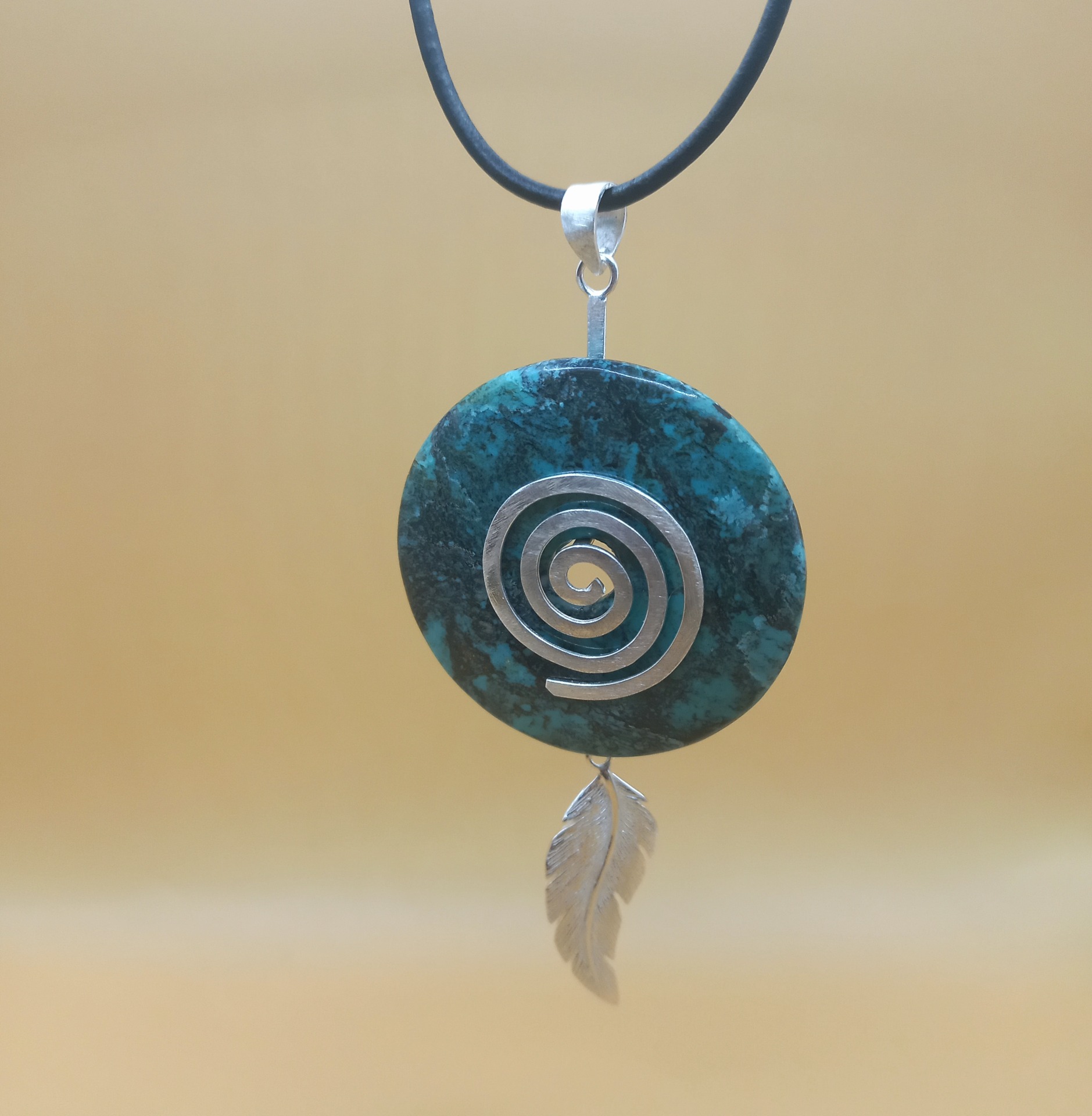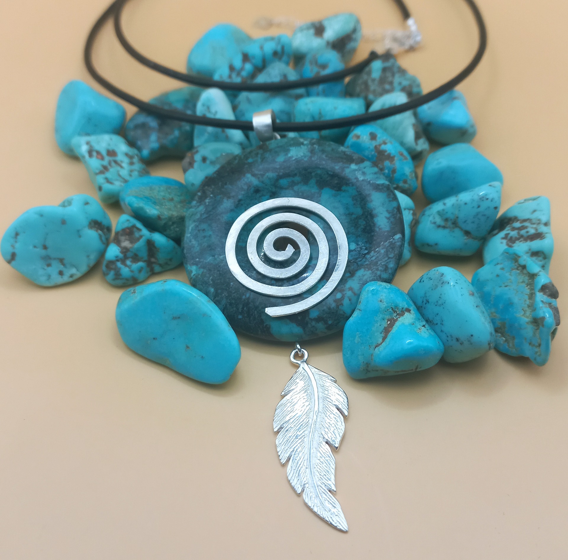 Die Kombination aus Naturstein, echtem Silber und Leder unterstreicht den ursprünglichen, kraftvollen Charakter dieses Schmuckstücks.