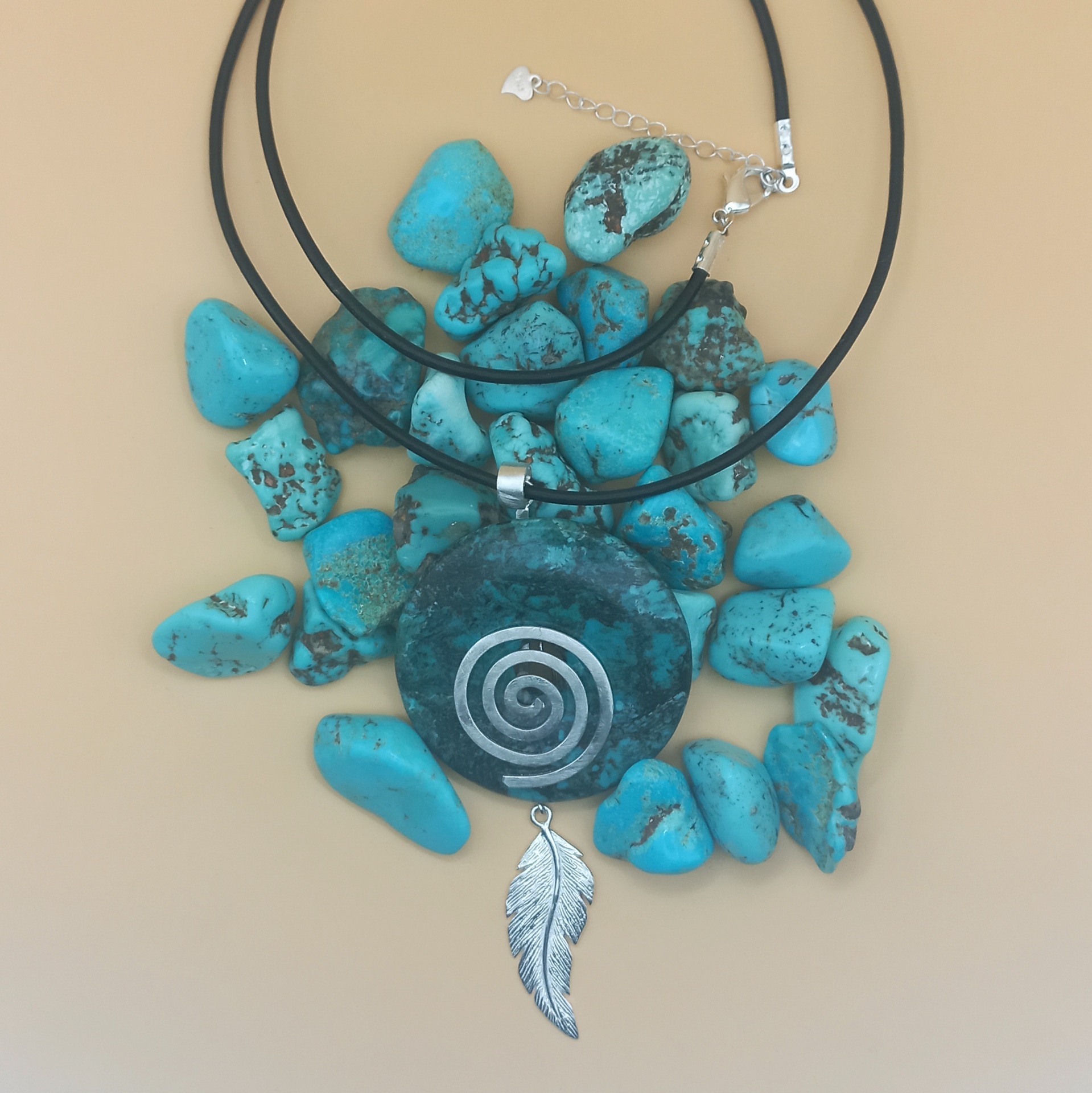 Der Türkis Donut wurde zu einer hochwertigen Kette verarbeitet mit: